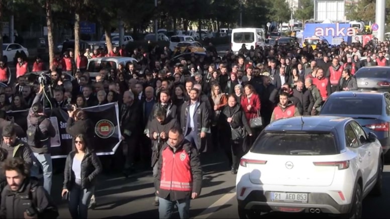 Diyarbakır Adliyesi önünde bir araya gelen avukatlar, Elçi’nin katledildiği Dört Ayaklı Minare’ye kadar yürüdü.
